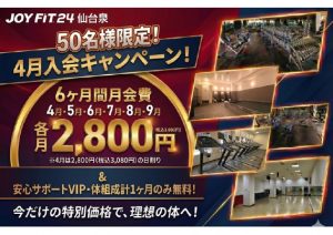 | その他 | 仙台でジムをお探しなら、是非ご相談ください。JOYFIT(ジョイフィット)はフィットネス・スポーツジム・エアロビクス・ヨガ、24時間利用などができるスポーツクラブです。全国展開しているのでお近くの店舗でトレーニングが可能です。ご入会方法等お気軽にお近くの店舗にお問い合わせください。 |