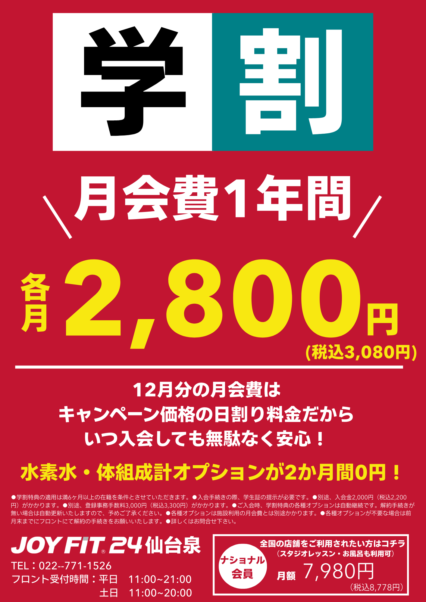 • 2025.12.03 学割キャンペーン実施中!12月31日まで!