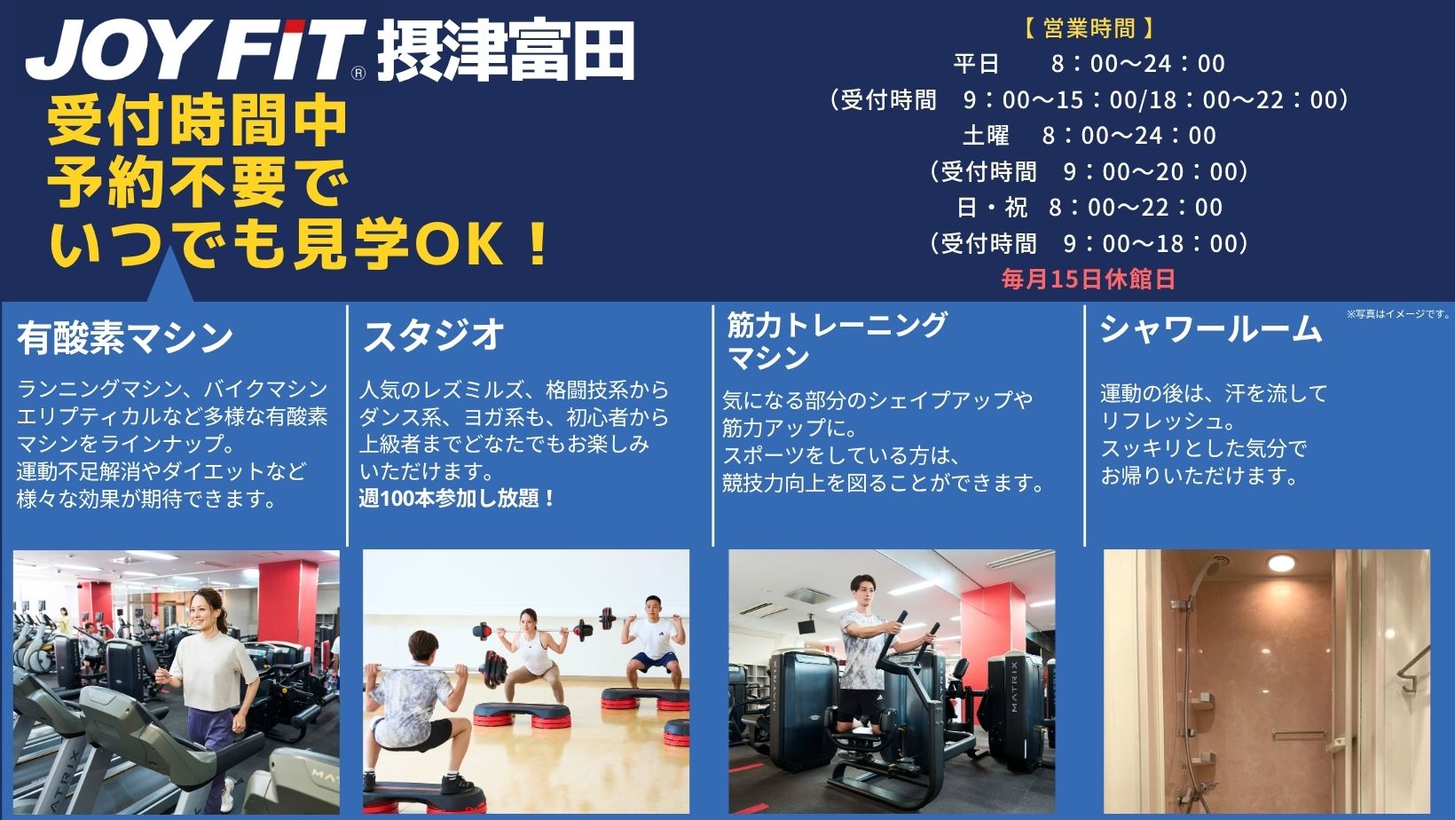 | その他 | JOYFIT摂津富田は室内シューズが必要です。 ※レンタル100円(税込) |