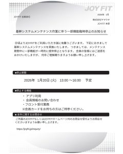 1/20(火)システムメンテナンスのお知らせ