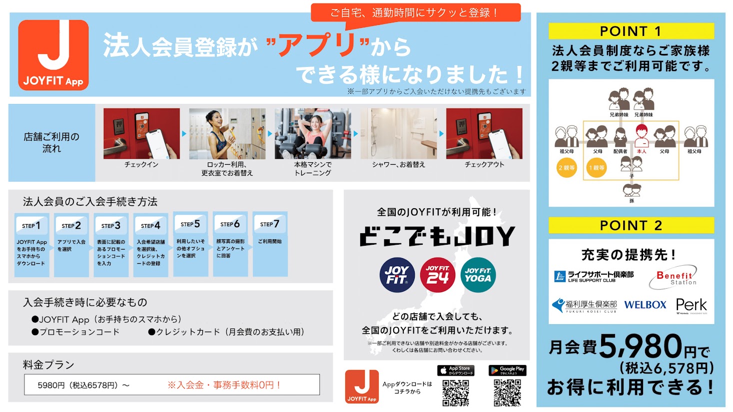 | 営業時間 | 24時間営業 受付時間 平日 12:00〜15:00/16:00〜21:00 土曜・祝日 12:00〜15:00/16:00〜19:00 毎週水曜日・日曜日は終日スタッフ不在でございます。 ※スタッフ不在日のご入会受付はJOYFITアプリよりお手続き可能でございます(クレジットカード決済のみ対応)。 その他のお問い合わせに関しましてはホームページのお問い合わせフォームからお願いいたします。  |