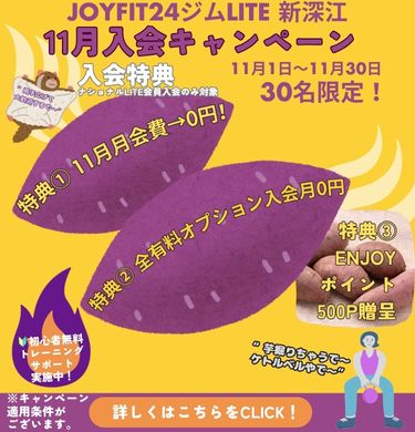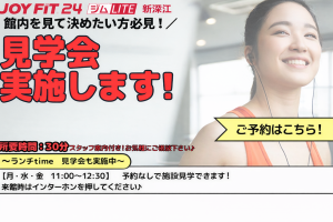 | その他 | ■24時間営業のスポーツクラブです。 ■スタッフ常駐時間 ※JF新深江店は無人運営店舗です。 施設の見学・体験利用は原則として行っておりません。 ■貴重品につきましてはご自身で管理をお願いします。 ※無料の鍵付きロッカーをご利用いただけます。 ■シャンプー・リンス・ボディーソープ・タオルの貸し出しはございませんので、 各自でご用意をお願いいたします。 ※ドライヤーは貸し出しておりますので、ご自由にお使いください。 |