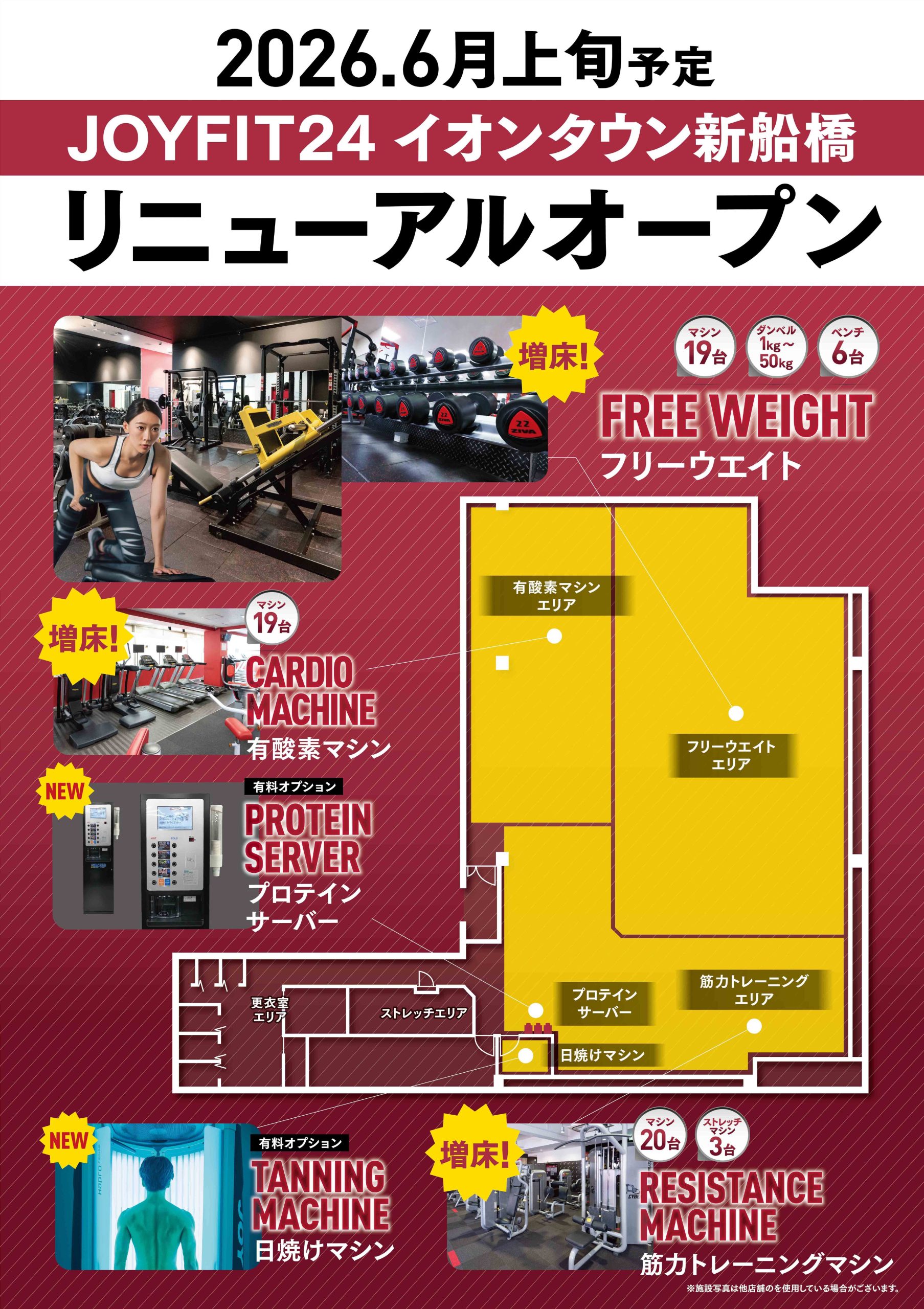 〒273-0864 千葉県船橋市北本町1丁目19-50 イオンタウン新船橋2F JOYFIT24イオンタウン新船橋