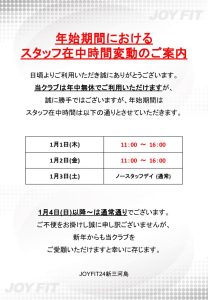 年始スタッフ常駐時間変更のお知らせ