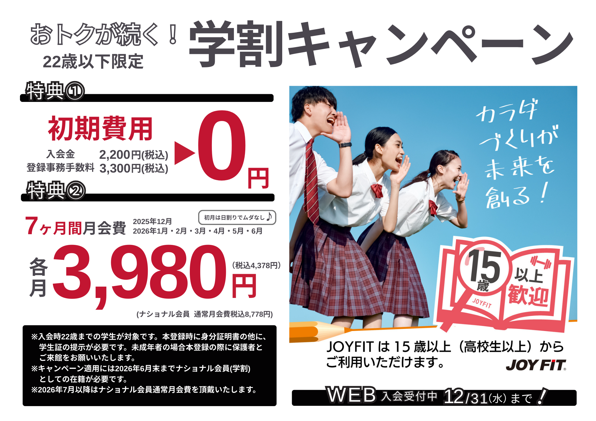 | その他 | ■24時間営業のスポーツクラブです。 ※毎月15日は休館日の為、受付対応は承っておりません。 ■貴重品につきましてはご自身で管理をお願いします。 ■24時間エリアにはシャンプー・リンス・ボディーソープの貸し出しはございませんので、 各自でご用意をお願いいたします。 ※ドライヤーは貸し出しておりますので、ご自由にお使いください。 ■ご利用の際は中履き用の運動靴をご持参して下さい。 ※外履きでのご利用は禁止しております。 ■<会費滞納の場合、店舗からショートメールでお知らせさせていただきます。> |