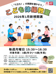 毎週月曜日15:30~16:30 対象年齢:3歳(年少)~6歳(年中) 無料体験会開催中! 1月26日(月)の初日クラスにご参加の方には、 2月の4回もまるっと無料体験が可能なスペシャルパスをプレゼント♪