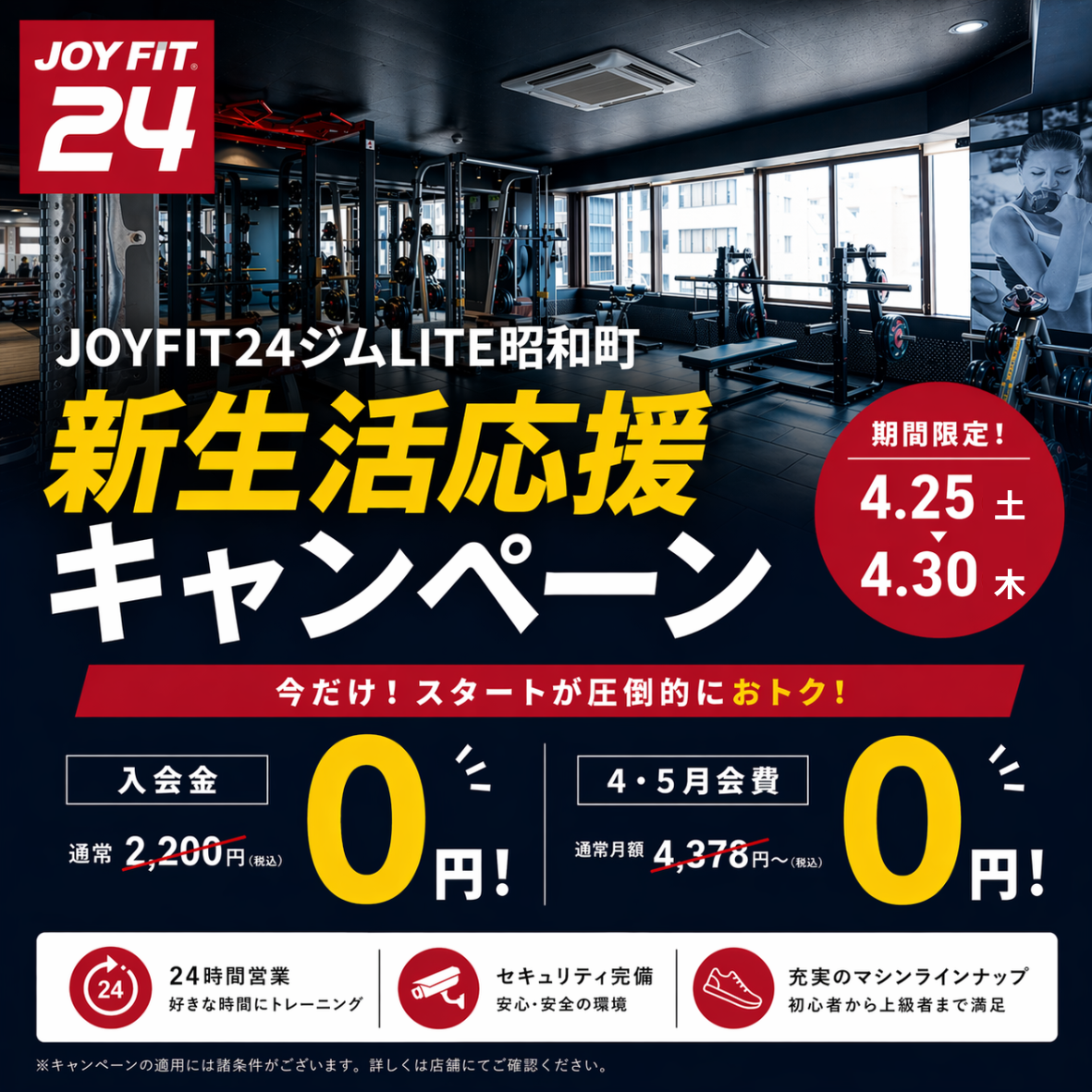 約10,000円もお得に入会できるチャンス! JOYFIT24ジムLITE昭和町で新生活をスタートしよう!