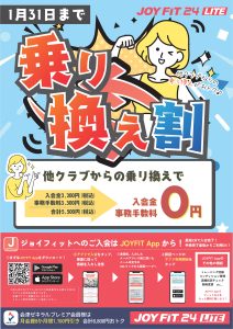 | その他 | ★ご入会・各種お手続き 【JOYFITアプリ】よりお手続きいただけます。 ※クレジットカード専用 ★転勤・引越しなどでご登録店舗を変更される場合 現会員カードをお持ちの上、所属店舗にて変更手続きを行って 下さい。 |