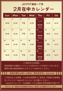 2月のスタッフ在中時間でございます!