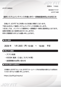 2026.01.10 1月20日(木)基幹システムメンテナンス作業に伴う一部機能臨時停止のお知らせ