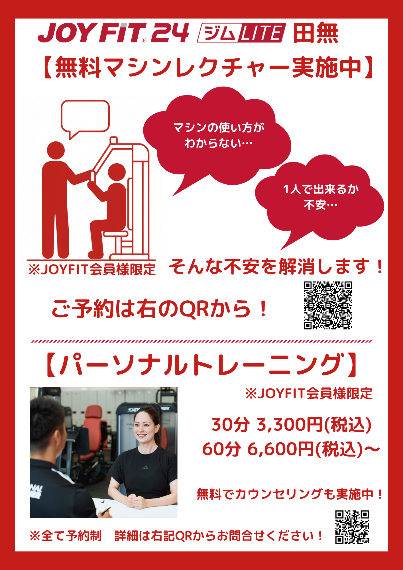 無料マシンレクチャーなどサポート体制充実!