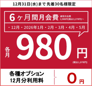 12月キャンペーン!12/31(水)まで ※残り17名様