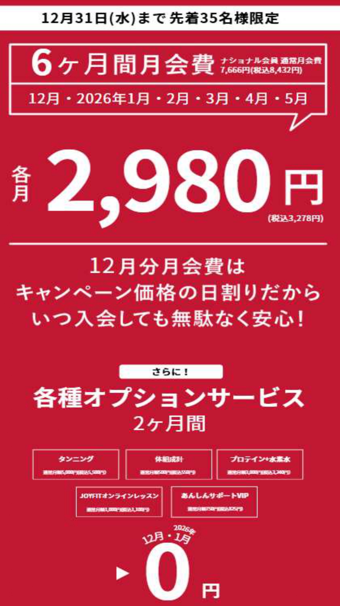 ※オプションの無料期間はご入会月、翌月でございます。無料期間での解除は、ご入会翌月にアプリにてお手続き下さい。
