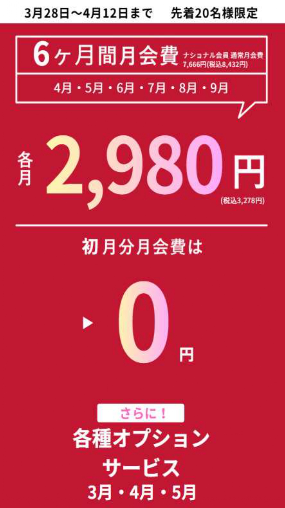 ※オプションの無料期間はご入会月、翌月、翌々月でございます。無料期間での解除は、ご入会翌々月にアプリにてお手続き下さい。