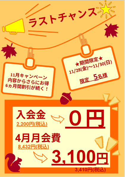 当月中の受け付けで当月末日退会です。(福利厚生等の法人会員様は翌月末日退会です)