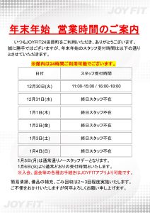 年末年始のスタッフ受付時間・館内ご利用についてのご案内