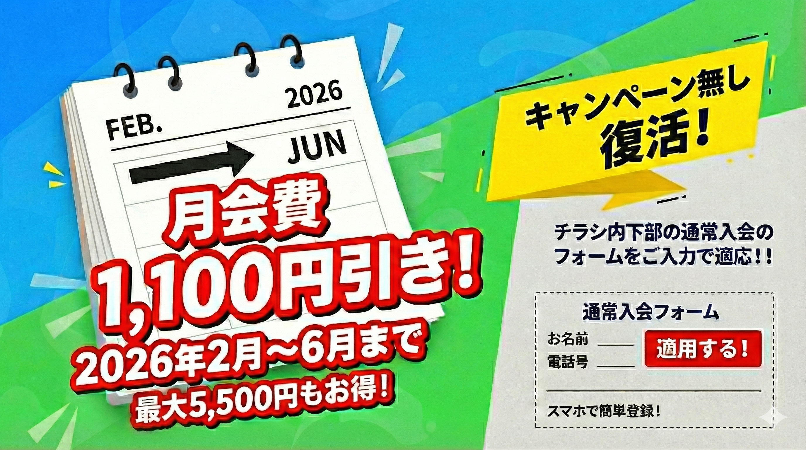 5か月間各月会費 4,378円(税込)➾3,278円(税込)でご利用頂けます!