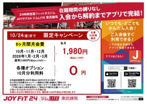 先着20名様限定のお得なキャンペーンです! キャンペーン内容 ・初期費用:5,000円(税込5,500円) ・各種オプション10月分⇒0円! ・10月~2026年3月⇒月会費1,980円(税込2,178円)!