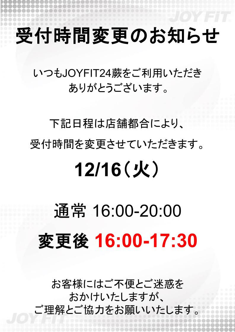 受付時間変更のお知らせ