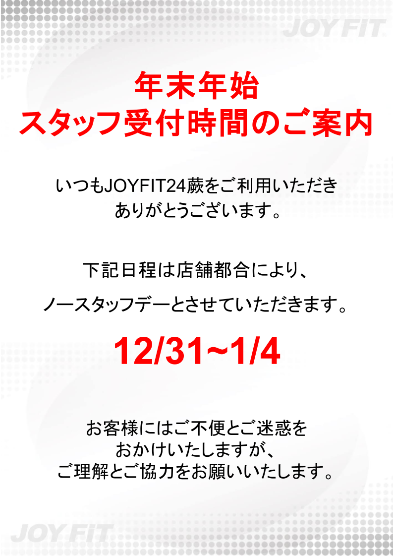 年末年始受付時間のお知らせ