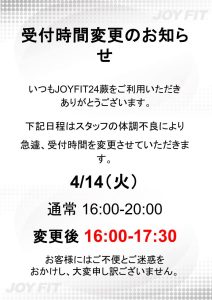受付時間変更のお知らせ