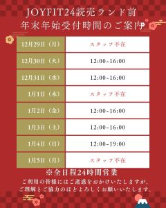 | その他 | ■24時間営業のスポーツクラブです。 ■クラブスタッフ常駐時間は 平日 12:00~15:00 / 16:00~21:00 土日祝日 12:00~15:00 / 16:00~19:00 ※毎週月曜日・木曜日は終日スタッフ不在 ■貴重品につきましてはご自身で管理をお願いします。 ■シャンプー・リンス・ボディーソープ・タオルの貸し出しはございませんので、各自でご用意をお願いいたします。 ※ドライヤーは貸し出しておりますので、ご自由にお使いください。 |